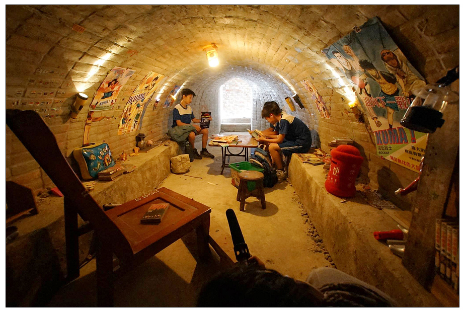 原來防空洞內的場景拍攝已經移到十鼓園區內的道具場景了,當時為了拍電影而製作的場景現在都保留,且成為主要展示的一部分^^
