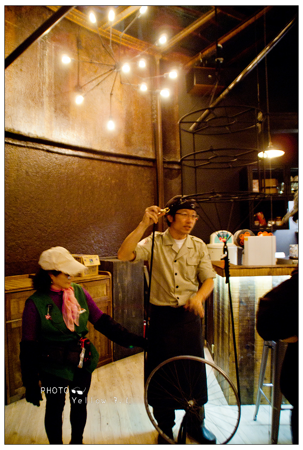這裡有個有趣的東西,轉輪跟上方的圓形鐵框,這是將來二、三樓有座位後,可以迅速把餐點送上去的運餐手動流籠~看起來蠻好玩的^^ 很有巧思~~
