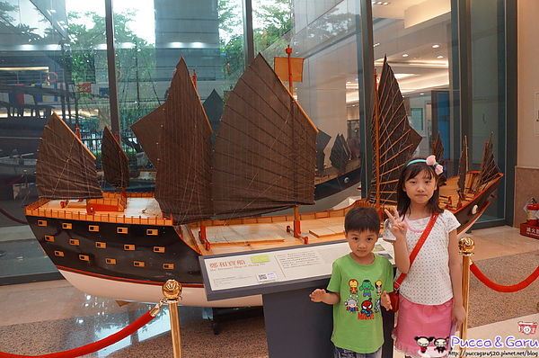 這區也有互動遊戲屬於答題型式,為了過關還仔細研究【沙船】與【福船】(中國四大古船之二)的用途與造型呢! 由於不能拍照,回家後搜尋了一張與現場模型最像的圖片表示,船槳好像一把關刀喔!