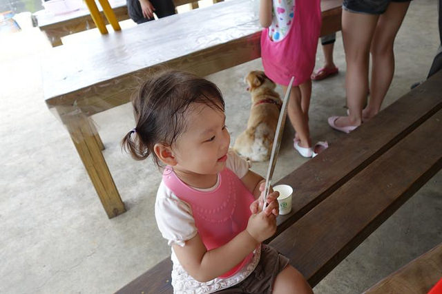 餵小羊,豆咪不夠高,餵不到,只能眼巴巴的看姐姐玩