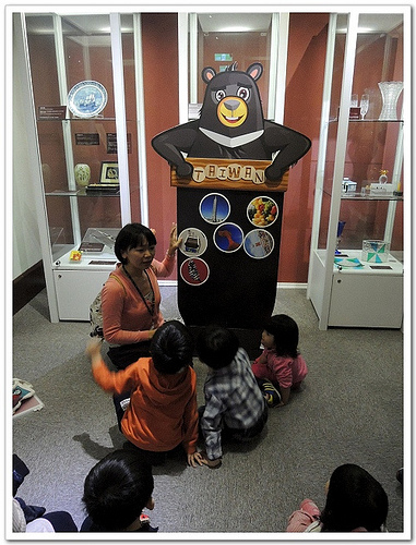 我們主要參觀總統的禮品展示,是由各國所贈送給總統副總統的珍貴文物。而老師就針對這些文物,講一些小故事,讓孩子們記住。內容有趣生動。