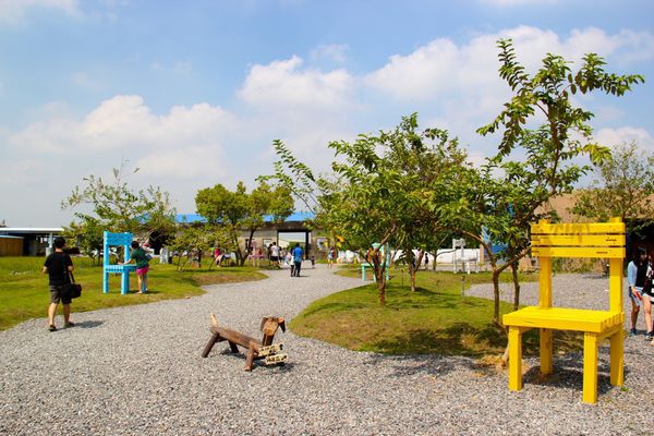 一進口就先看到設置許多比人高的彩色座椅,完全將童心激起!另外有些裝置也十分有趣,這裡是優雅農夫花半年時間整理打造出來的,原本荒廢的土地完全是另一個全新的面貌!