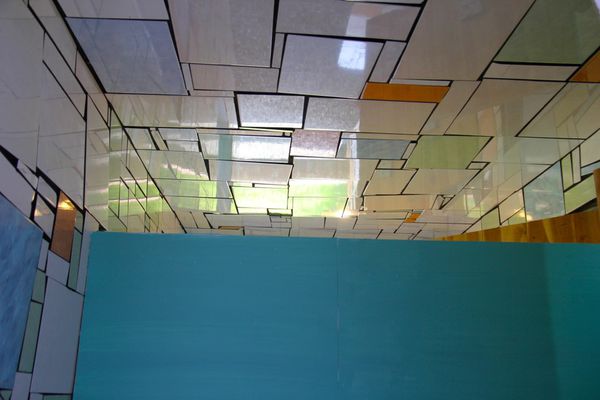 馬賽克拼貼,另外用廢棄安全帽來裝飾