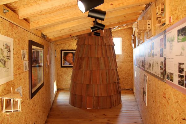 裡面是展出一些建築作品及設計說明,想看到建築模型得自己換個角度才能看清楚,中間那個造型特殊的是.....廁所,伸出屋頂像煙囪的部份則是利用屋外的光線,所以說應該是具有環保、綠建築概念屋吧!