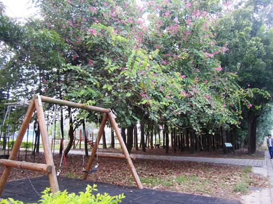 這裡最讓兩兄弟大大稱讚的,就是座落在桃花心木林旁,大大小小、有些新穎、有些很有歷史、更有些頗樸直的遊樂設施了。