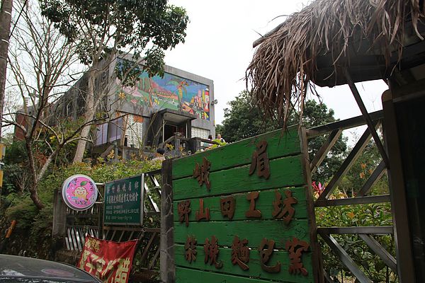 離開寶山後,在老李的提議下,我們臨時到峨眉鄉公所附近的野山田柴燒麵包窯,這是甘單第一次聽到的地方,外觀是一座天主堂,因此整棟天主堂的外觀看的到一些鮮豔帶有宗教色彩的圖案,好似水洗子拼出來的,遠遠地就很吸引目光注意。很難想像一座柴燒麵包窯會設在一座天主堂內,因此半信半疑的爬上階,在樓梯上便聞到陣陣的柴燒麵包香氣,所有的疑問也都消失了,反倒是很期待看到的是怎樣的麵包。