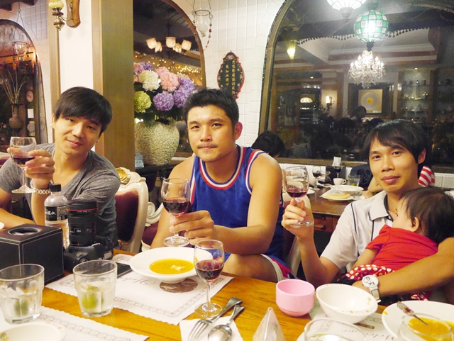 三位瀟灑的男士品嚐完紅酒,回房間繼續小酌~