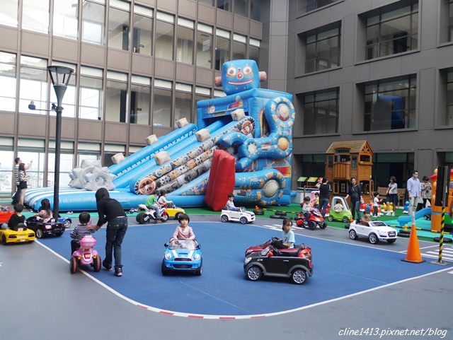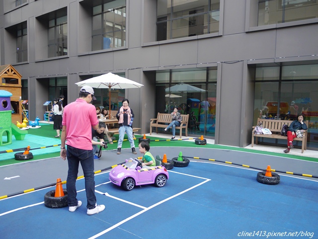 這樓層最特別的地方就是整個ㄇ字型的走廊都是兒童汽車專屬跑道