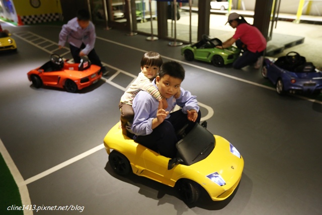 大廳一旁有幾台迷你版藍寶堅尼小跑車,小朋友們看到都瘋狂了