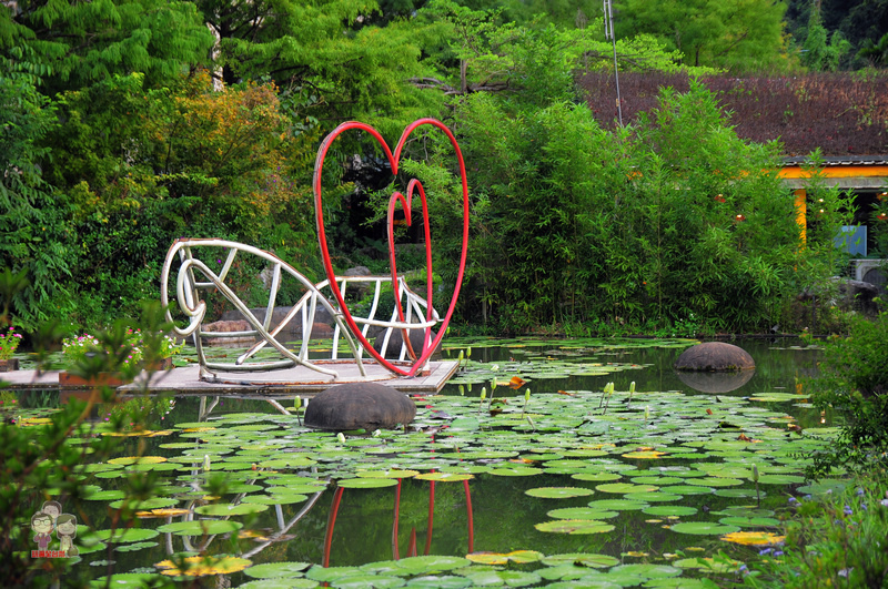 一旁還有充滿靈性的元寶石,導覽員表示這是花神廟在施工時,從地底下所挖出的二顆石頭,將其組合之後,就像是元寶一樣,也彷彿是花神送給農場的一個好預兆那般。