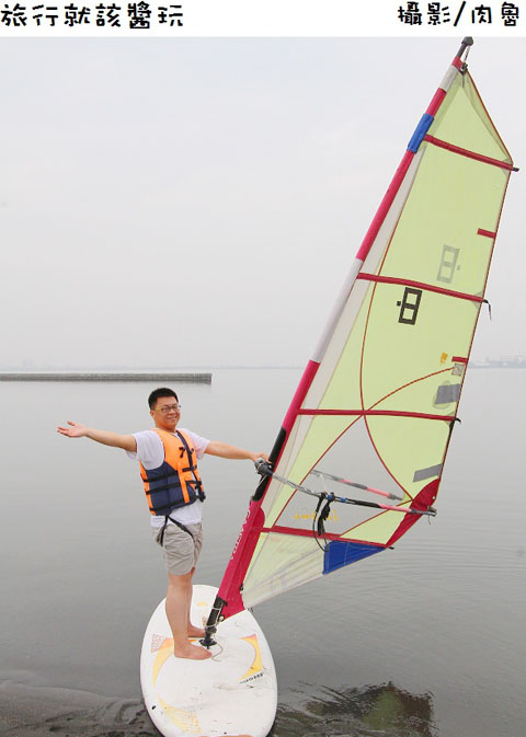 ▲大鵬灣也有困難度超高的風帆體驗唷,據說翻船率是高達60%,想要駕御風帆,可是得需要半天學習時間,因為時間不夠,我就做做樣子過過癮啦。