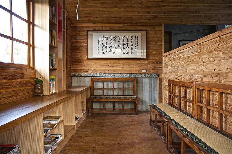 如果房屋的外觀,會覺得有點日本或臺灣早期建築味道,相同的氣味也在這個閱讀空間感受到,加上牆上單純只有水泥均勻塗抹,極為低調的個性。