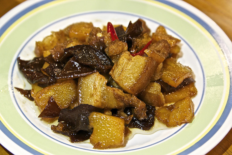 一碗白飯加上筍干焢肉就是最豐盛的晚餐,因為濃烈的鄉土味不容易感受到。特別介紹晚餐是因為這裡到集集市區大概要開車10分鐘,雖然不遠,卻是與農村老爺的風格不太對稱,留在民宿晚餐才會更有鄉村氣息,重點是民宿女主人的手藝很好,所有料理都不放味精,以健康飲食為前提,我們的晚餐也是他們的晚餐,沒什麼不同。另外值得一提的是因為會隨季節變化而更動,但還是以家常菜為前提,有些菜色會以民宿自家後院種的蔬果入菜,像是「涼拌木瓜絲」即是後院摘的。