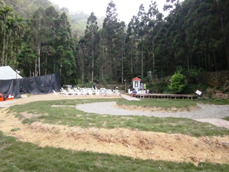 公路旁水泥護欄有個缺口,不注意很難發現這裡豎立個「聖愛營地」的小信箱,信箱後方斜坡有條往山下的小徑,原來這是往營地的路,很意外!