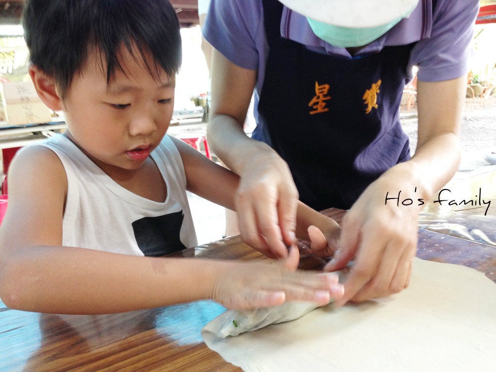 YO居然捲到蔥花從兩邊掉出來,還很開心一直笑!對孩子來說,手作的樂趣重在體驗過程,了解步驟後親自動手做就很可貴,成果不完美沒關係,哈哈!
