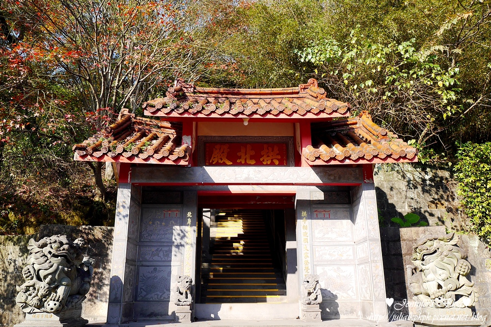 當車子彎進拱北殿的道路上,映入眼簾的盡是兩旁轉紅的楓葉