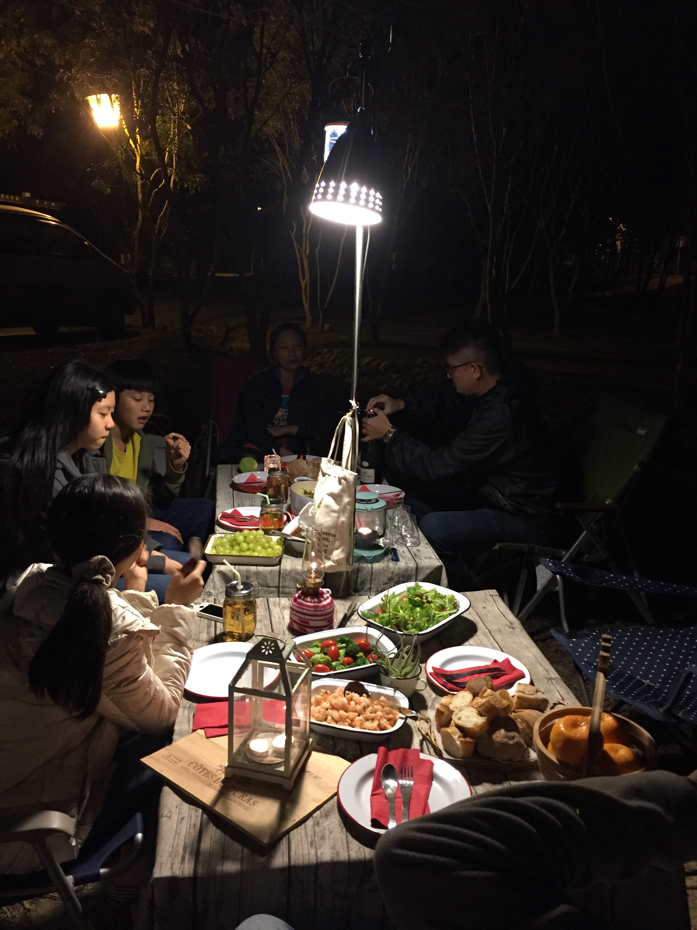 這不就是露營令人著迷的悠閒緩慢,最悅耳的聲音嘛!將卓巾鋪上、餐具擺設好、燈光打上,