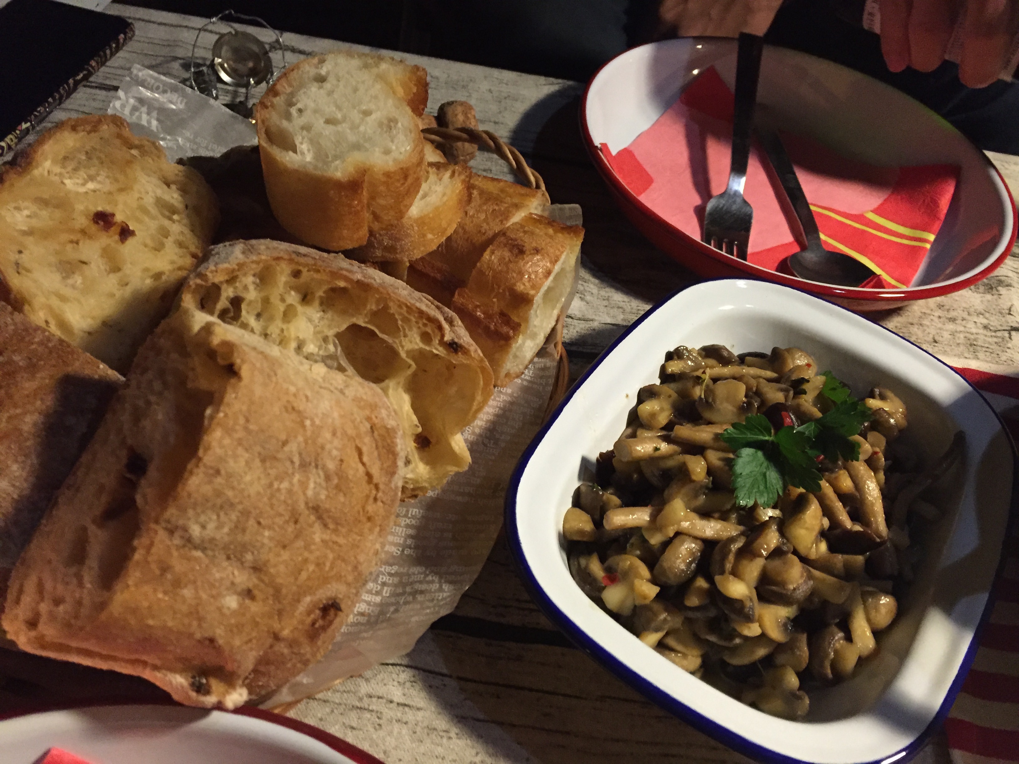 *溫溫的法棍麵包 佐 橄欖油拌炒野菇 & 蝦仁
