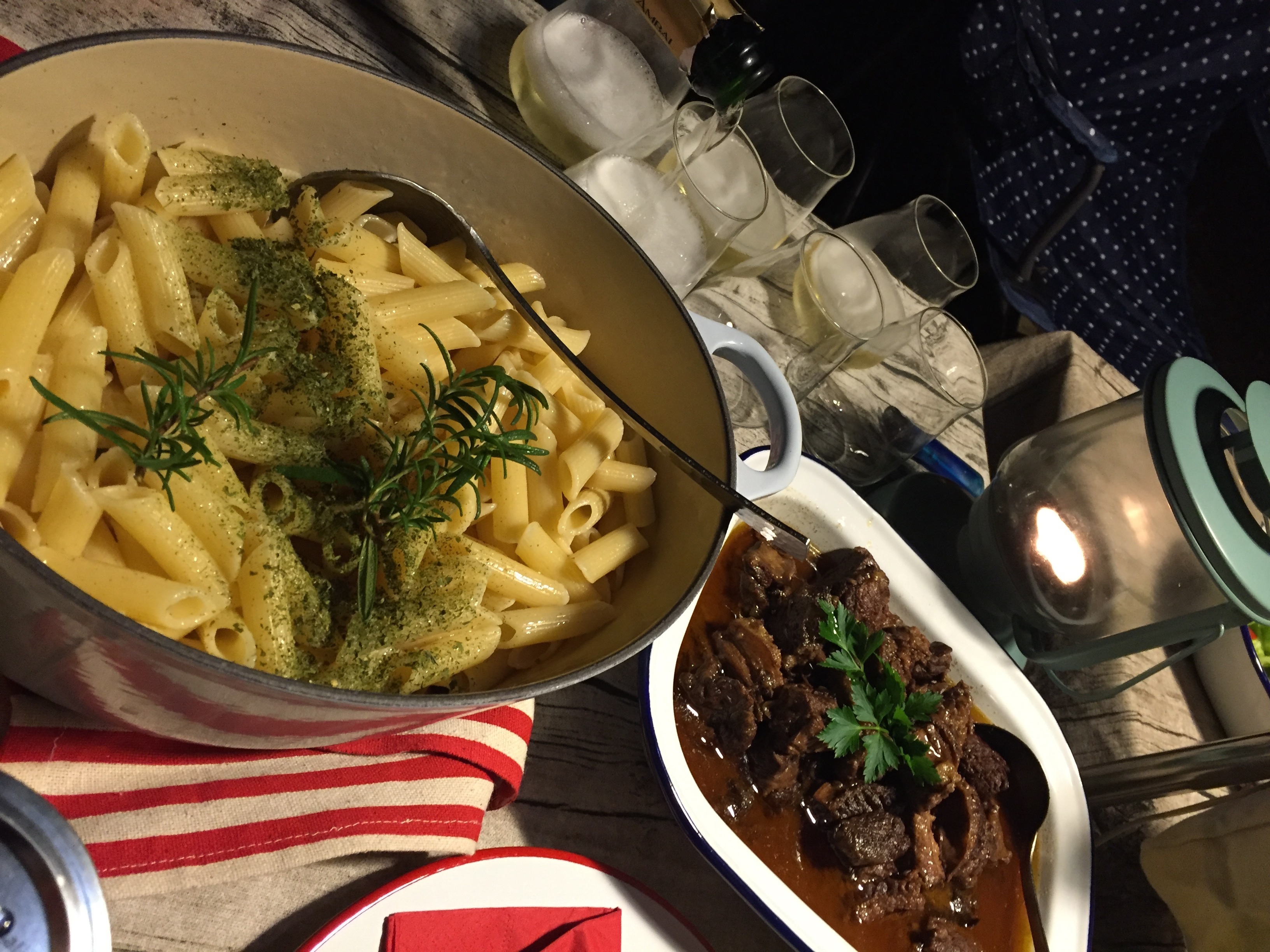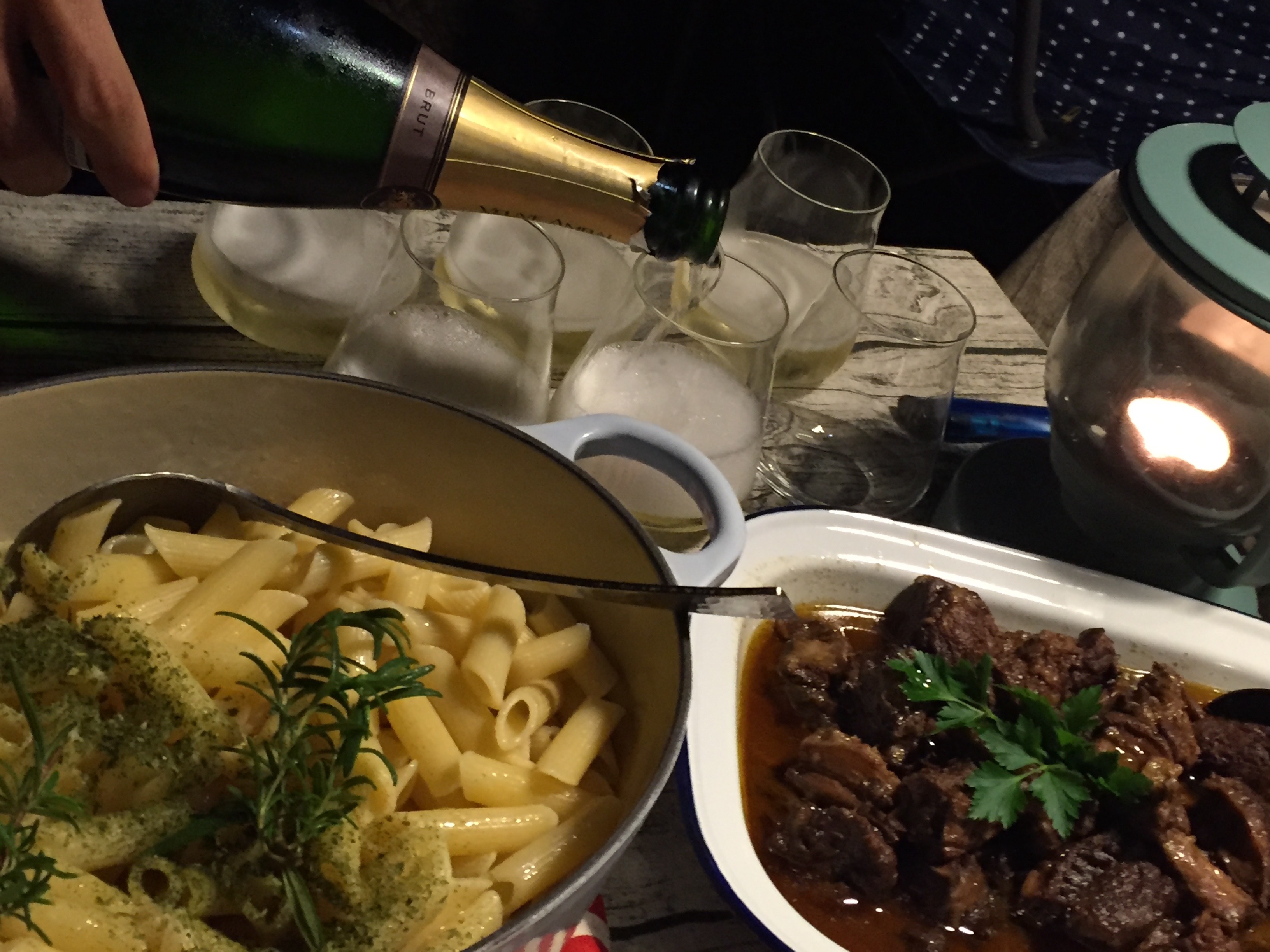 然後在森林廚房一起切切洗洗處理菜餚,倒一杯美酒一邊料理,
