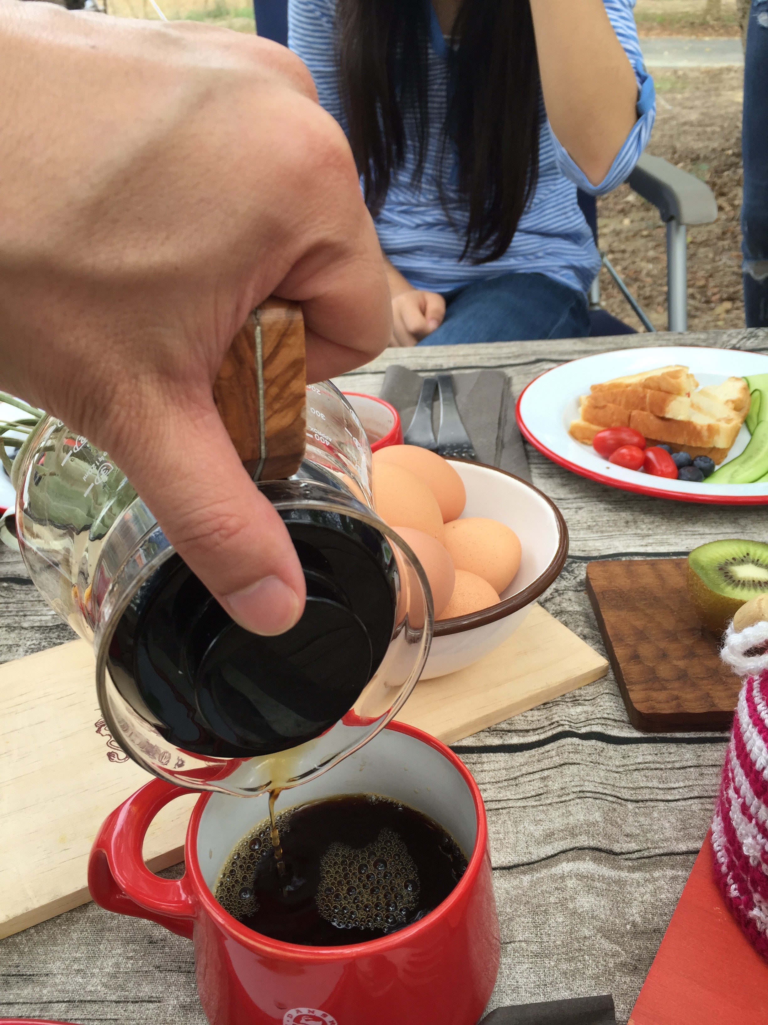 大人就坐在樹林間發呆喝咖啡。這樣放空真是好!
