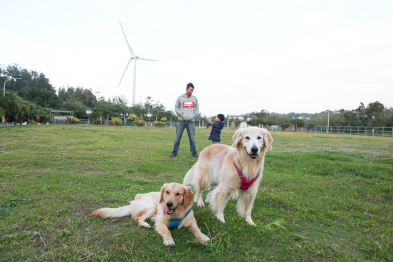 兩隻毛孩、一隻歡孩可在這草地上跑不停一整個開心