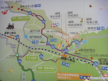 先看一下地圖,紫色路線是自行車道,每到沙雕藝術季節,旅行社也會有相關行程喔!