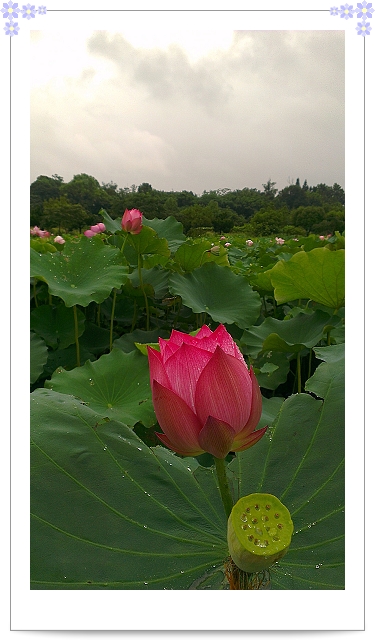 依目測的結果...荷花大概有三成開花,三成含苞,三成花謝了吧,不過荷花的美還是讓人覺得清新脫俗.