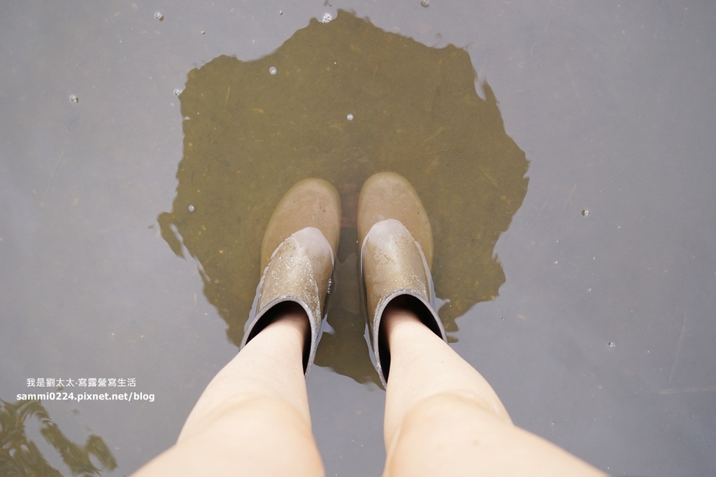 導覽活動可以另外租雨鞋,大家汲水回營區,穿著雨鞋走在水上,到了盡頭後,一邊笑鬧著一邊把雨鞋裡的水倒出來。