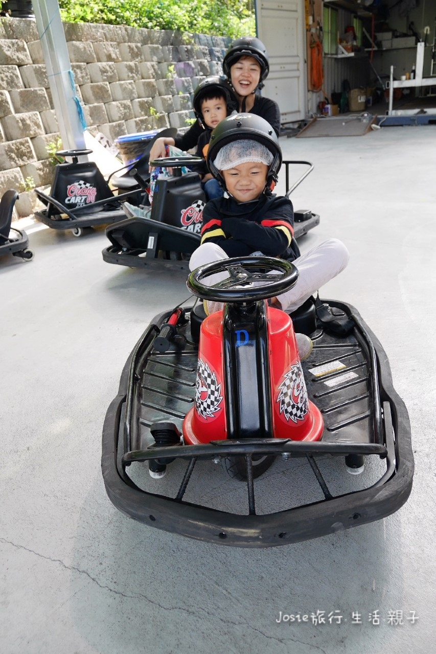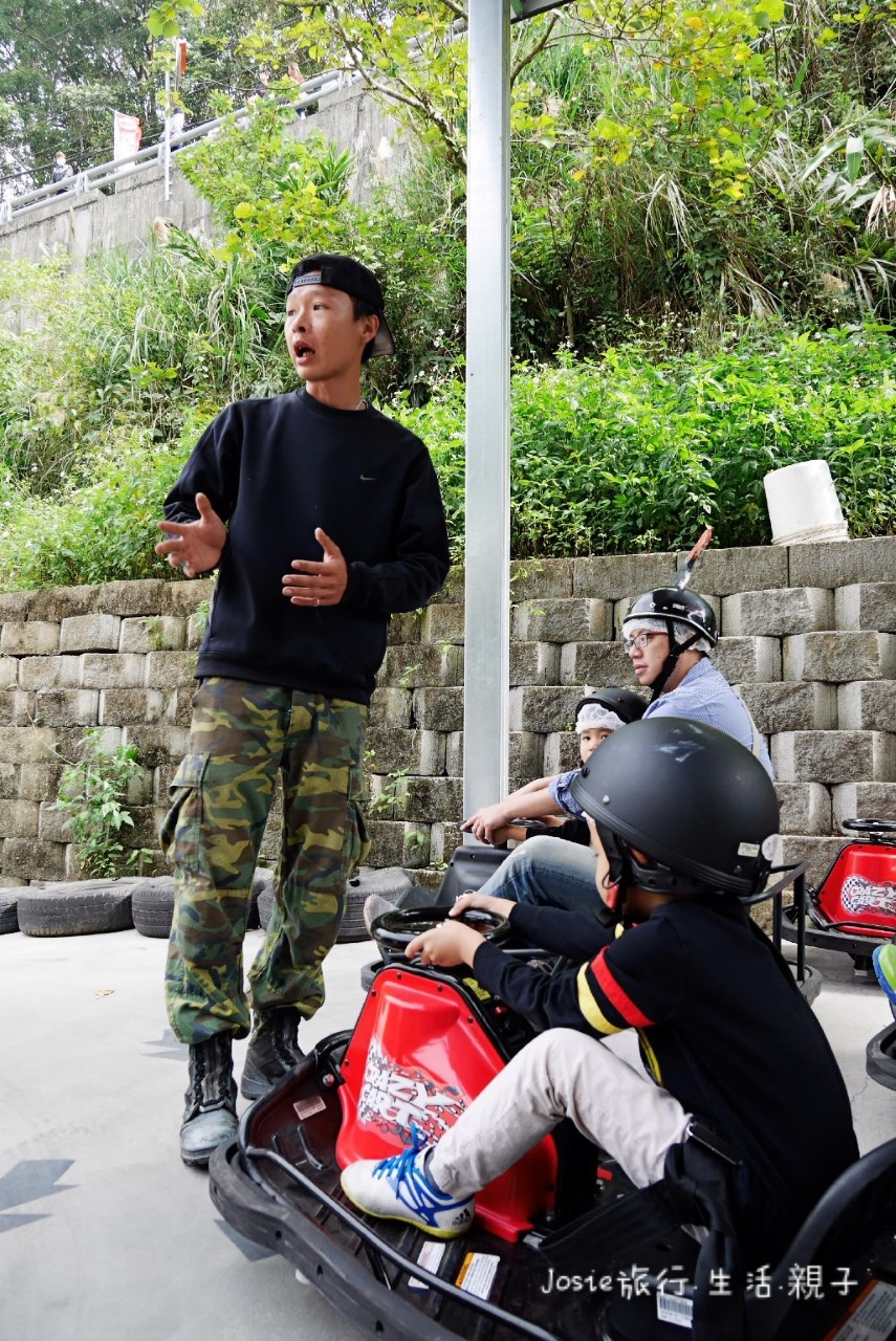 帥氣老闆人超級親切,前來叮嚀教導小Abbie要如何控制油門 (玩樂之餘,還是要注意安全呀! )