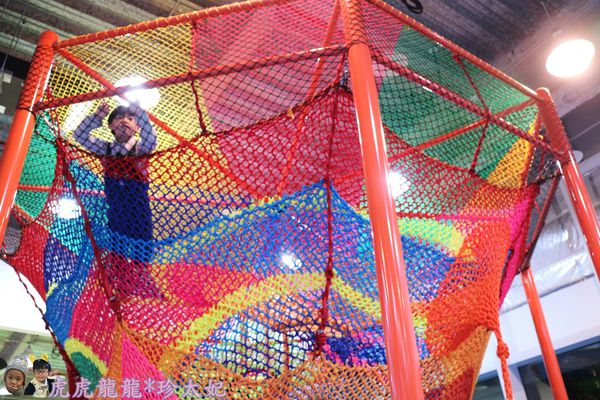 原本有點失望不能玩探險區,但沒關係,一旁的巨大彩虹攀爬蛛蜘網更吸晴,超酷!