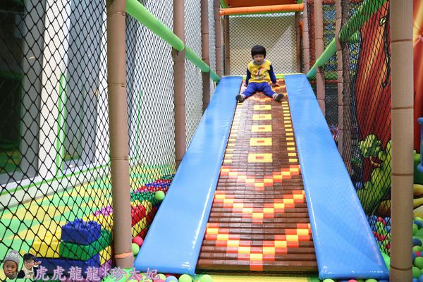 接著再來個滾輪溜滑梯,這還是我頭一回在室內樂園內看到滾輪式溜滑梯耶,雖然速度不快,但倆兄弟也覺得相當有趣