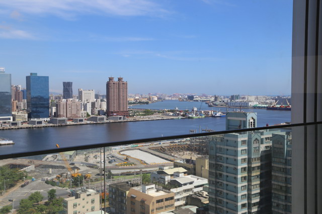 飯店位在五福四路上,鄰近愛河流進高雄港區的交匯處。飯店建築很高挑,有26層樓高,鶴立雞群的感覺,所以海景景觀特別好啊。