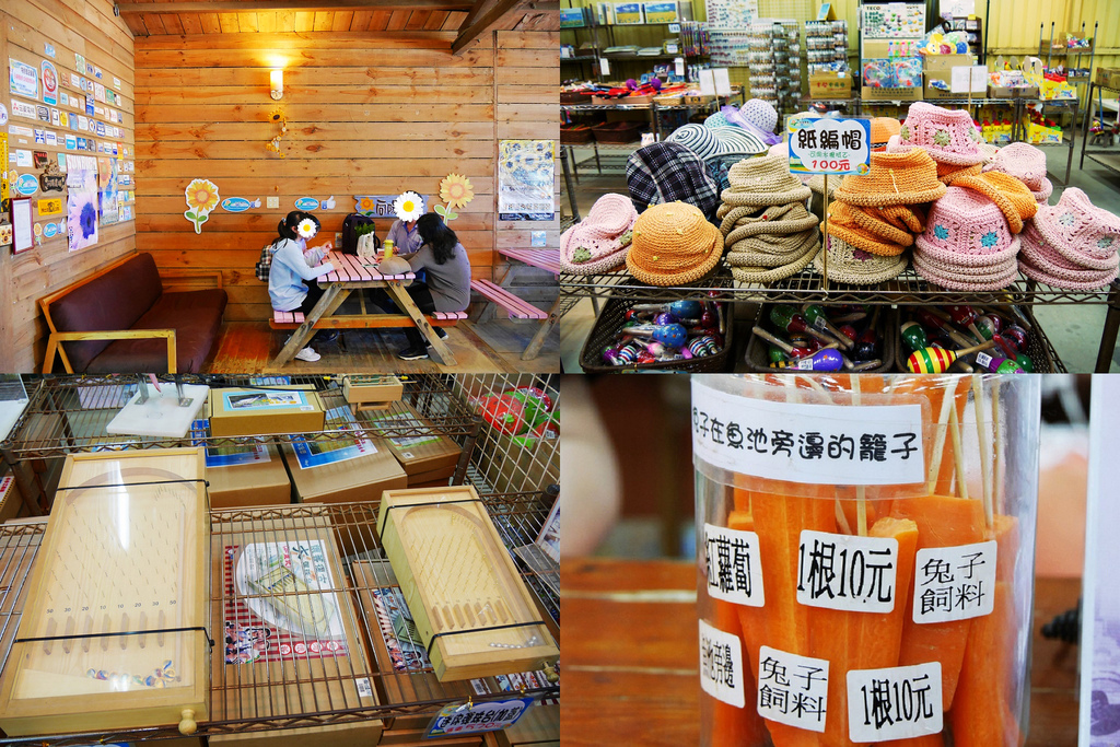 商店有賣餵食小兔子的紅蘿蔔,兔子的位置在小火車跟魚池中間