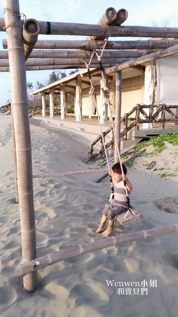 白色沙灘上頭的竹架鞦韆,盪起來頗有意境呢!