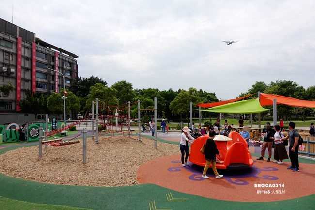 充滿繽紛與童趣的蝶舞共融遊戲場,放眼望去好舒服,在這裡玩還有個特色~時不時可以見到飛機由頭頂上飛過喔!讓人好驚喜!