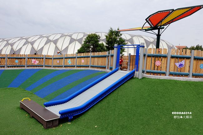 人工草皮山丘溜滑梯,很多小捧油都不溜滑梯,而是直接由草皮上翻滾下來或是溜下來,感覺更是樂趣無窮~很適合帶喜歡滾草皮的孩子來玩樂