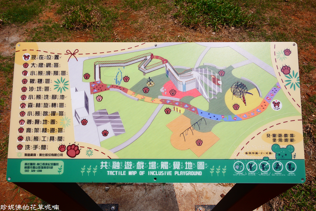 共融式遊戲場在公園路旁邊,入口有一個林口區立圖書館的站牌