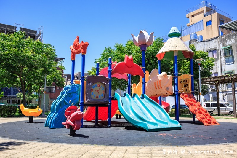 桃園夜市附近的永康公園,這裡佔地廣大,有種植許多樹木可遮陽,還有大型天幕活動廣場,溜冰場、草地,小朋友超愛的戲水池,蜜蜂磨石溜滑梯/瓢蟲攀爬架/滾筒翹翹板等等親子設施,趕快帶小朋友來這裡溜滑梯戲水吧!文章來源:愛伯特吃喝玩樂全記錄更多景點文章