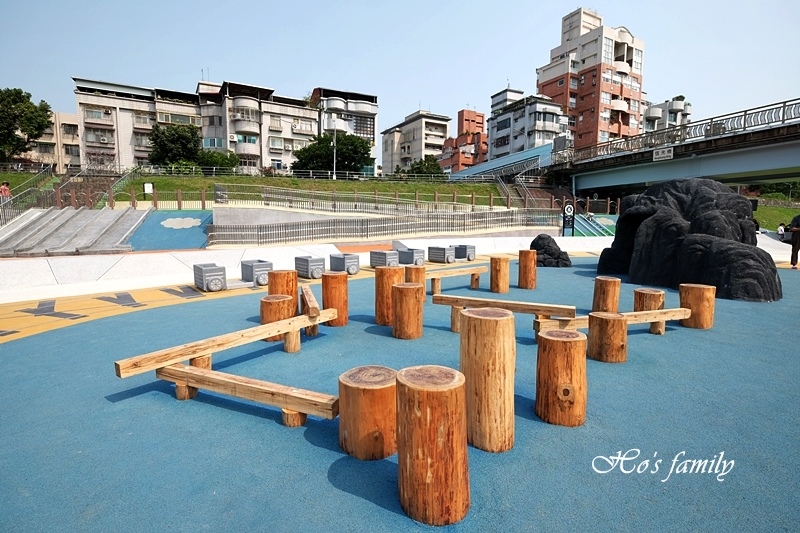 道南河濱公園遊戲場一共有兩座平衡木遊具,山洞後面的適合6歲以上,稍微有些變化與難度,增加遊戲的樂趣與挑戰。