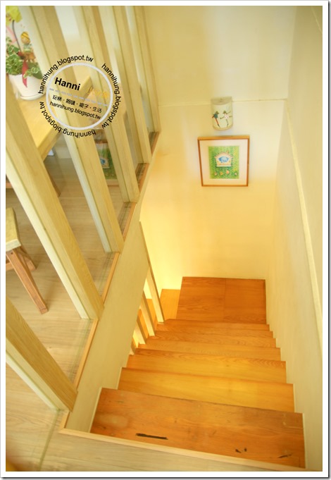 櫃台後方的樓梯,也是小朋友很愛的空間。有點陡,有點恐怖,但又好有趣哦~。