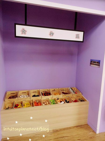 ▼櫃上的食材展示擺放用心,每個格子都有貼上玩具的照片