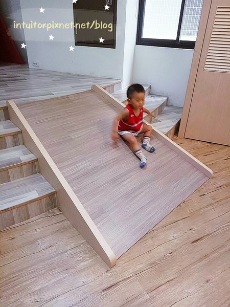 如果感覺有點害怕時他會在中途 翻成俯臥方式滑至出口。