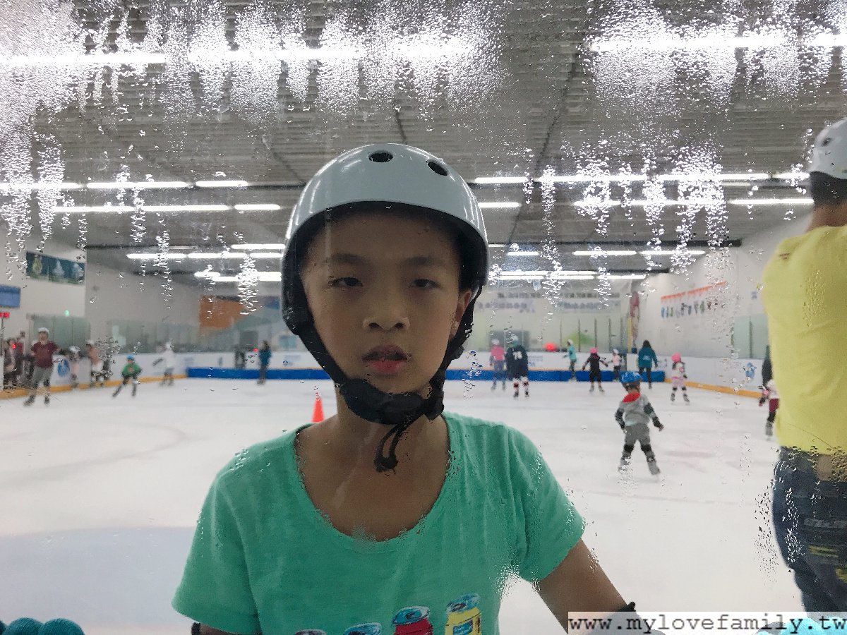 宥宥其實連溜直排輪都不太會,對於溜冰,相對有難度,一開始還擔心會不會下場不到半小時就吵著要回家,沒想到,宥宥全程三個小時都很努力認真的自我突破,從一步一步走到會往前溜前進。