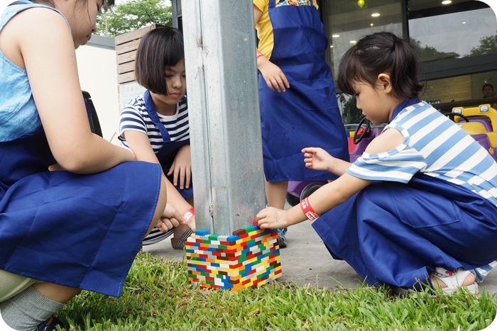 室內體驗之後,接著到外面體會樂高大師的工作方式。 (饅頭人又出來上課了)