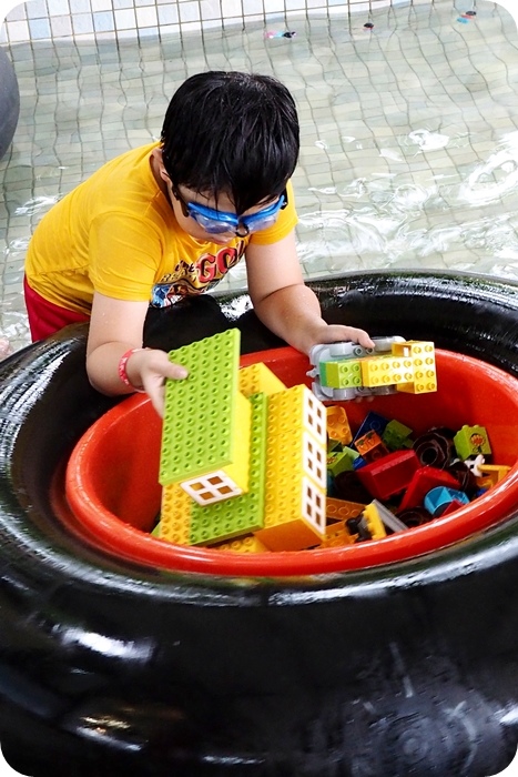 幾乎用光了泳圈裡的積木,這群瘋小孩,要不是太陽快下山了,很難拉回家。