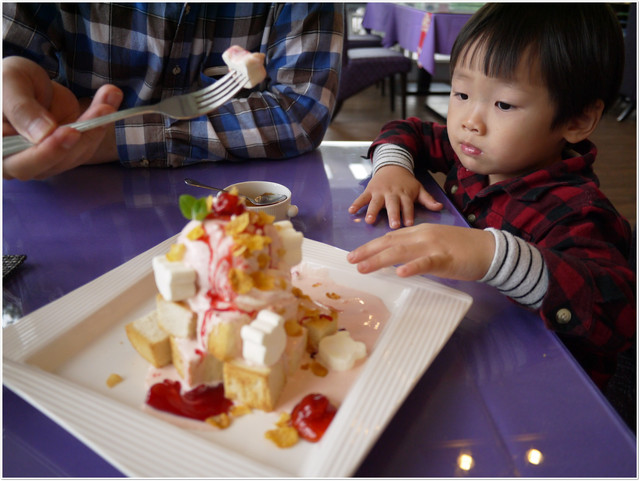 套餐則點了法式金磚蜜糖土司,小威的最愛~草莓口味,最上面就是草莓冰淇淋
