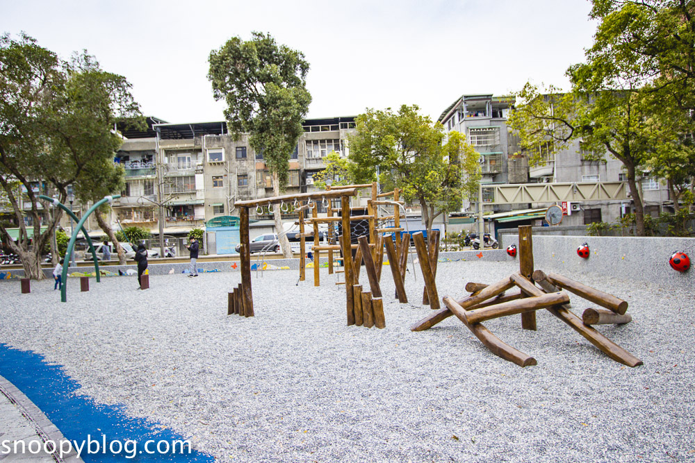 【興隆公園兒童遊戲場】攀爬遊具以原木組合設計,