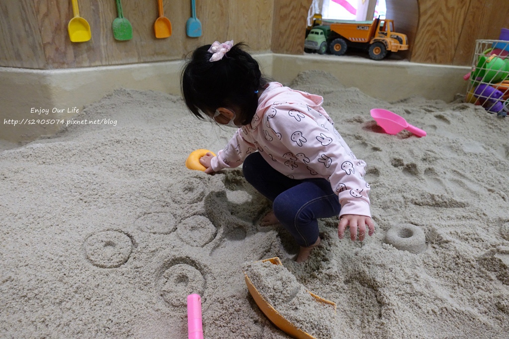 並且不用自己準備玩沙工具 ,水桶、模具 、 鏟子、堆土車、挖土機、沙漏玩具…等一應俱全