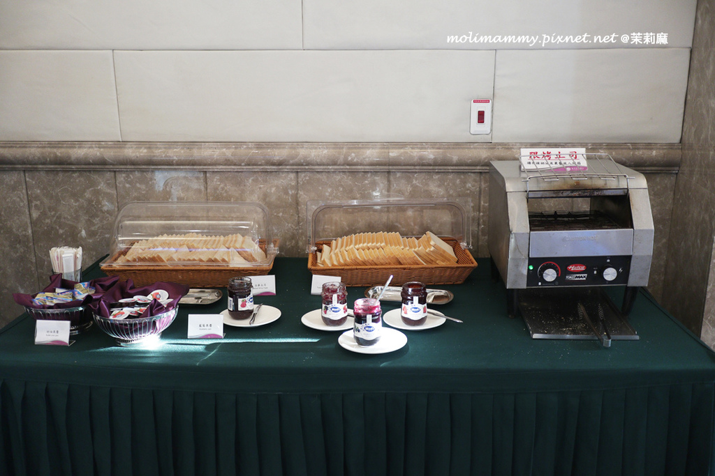 西式主餐有現烤吐司附各種果醬、各式餐包、鬆餅等等