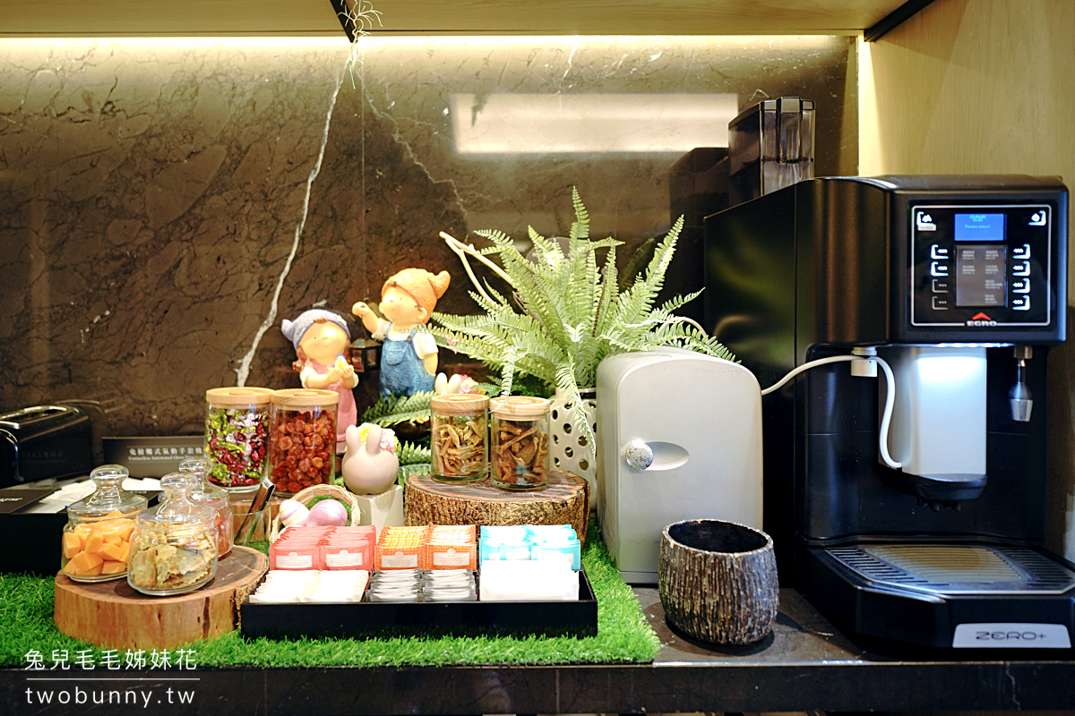 沙發旁邊是 mini bar,除了必備的瓶裝水、快煮壺、茶杯、茶包外,還有膠囊咖啡機呢!!